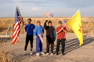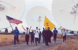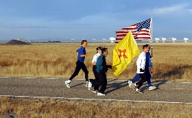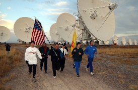 The National Radio Astronomy Observatory (NRAO) hosted the runners and support personnel of the "Americans United Flag Across America" run as the transcontinental memorial and fundraising effort came through New Mexico. The flag run arrived at NRAO's Very Large Array (VLA) radio telescope west of Socorro, NM, early in the post-Midnight morning of Monday, November 5, and departed after sunrise that morning en route to the Arizona border.